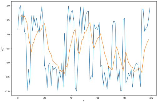 Lets now try out an example. To begin with we’ve prepared a simple time series (t1), which is shown in the image below. The time series is relatively flat, with fluctuations between -1 and 2.