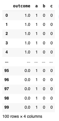 model = bmb.Model("outcome ~ a + b + c - 1", df, family="bernoulli")