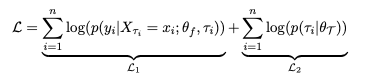 the function f which maximises the joint log-likelihood of the time-domain shifts and the prediction residuals. Specifically, we maximise: