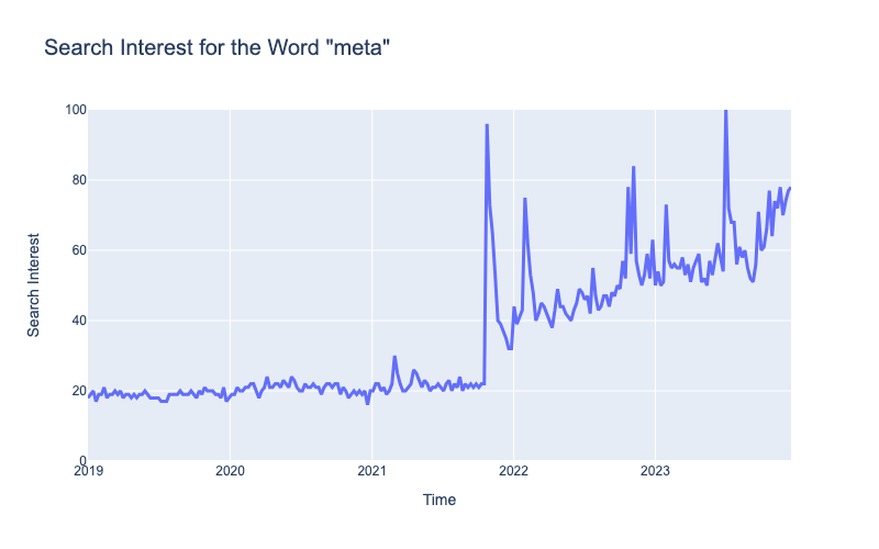 Of course, the word ‘meta’ was commonly used before Facebook/Meta came around. Thats why the plot shows search for the term before the name change.