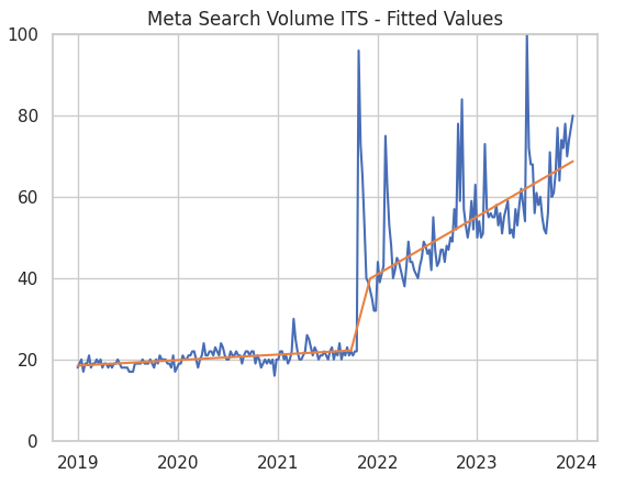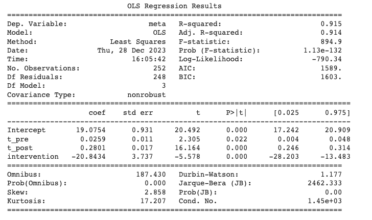 In this article, I have shown how to do a simple Interrupted Time Series analysis, using search volume for the word ‘meta’ as an example. While straightforward, this method is particularly effective given that the appropriate assumptions are met.