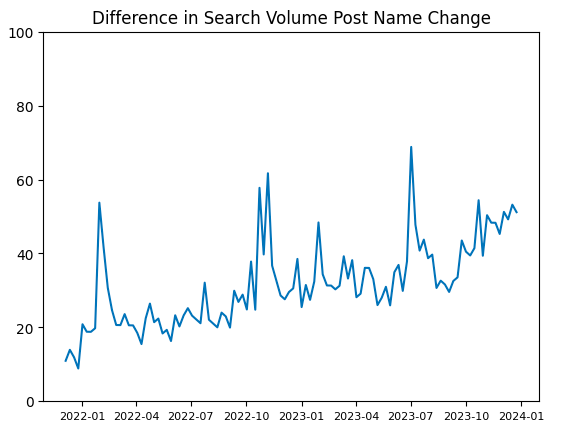 Summing these values over time, we get approximately +3300 search volume since the name change.